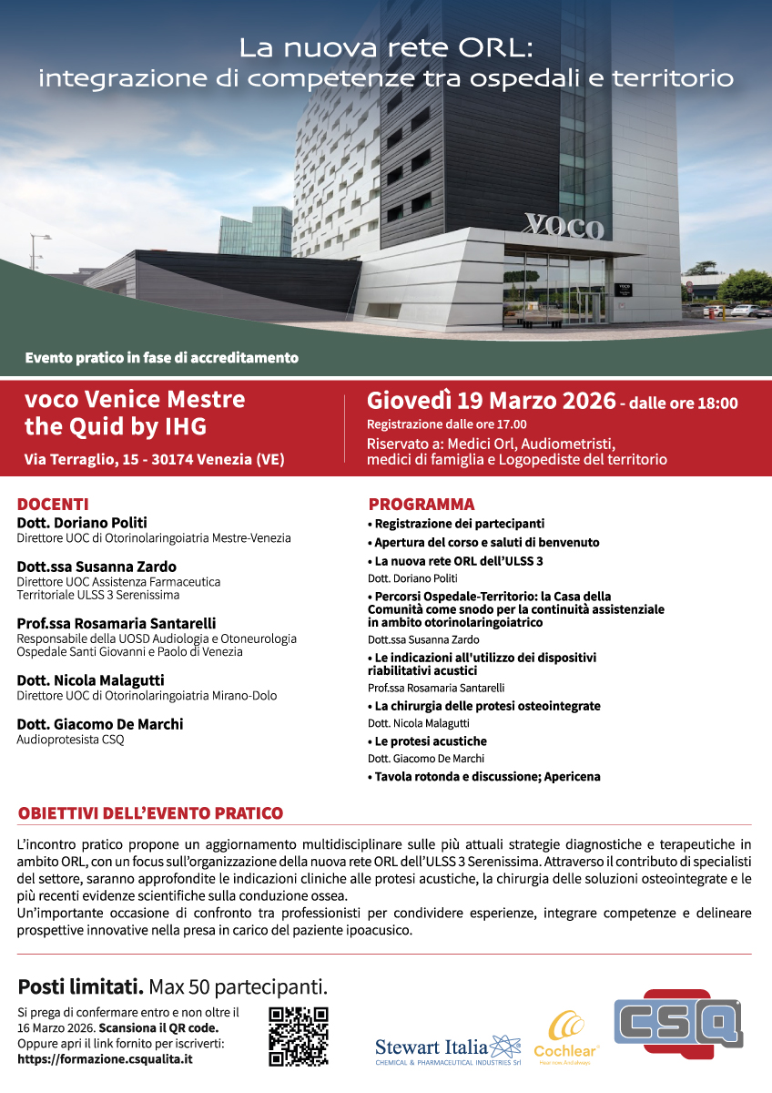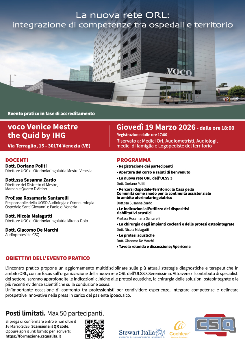 Evento formativo in presenza riservato a: Medici ORL, MMG, Audiometristi e Logopedisti del territorio